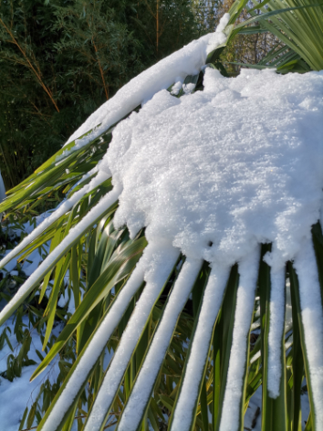 Les palmes qui ont la forme d’un éventail, résistent juqu’à -12°, voire -15° et le tronc, lui, a la particularité d’être entouré de fibres brune.